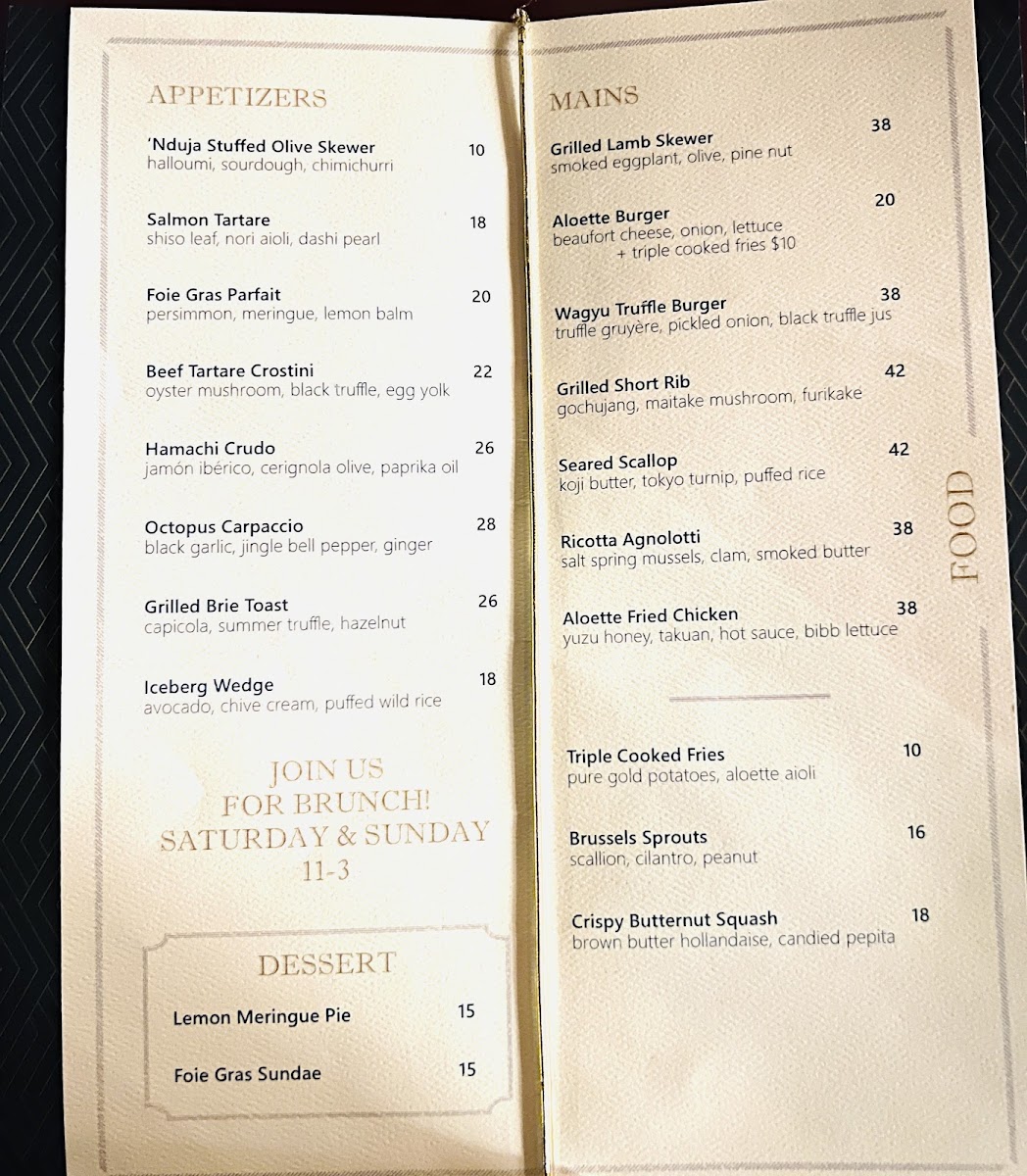 Welcome to Aloette Restaurant, a hidden gem located at 163 Spadina Ave., Toronto. This cozy eatery specializes in beautifully crafted dishes, blending bold flavors with a relaxed atmosphere. The menu showcases a variety of enticing options that cater to all palates.